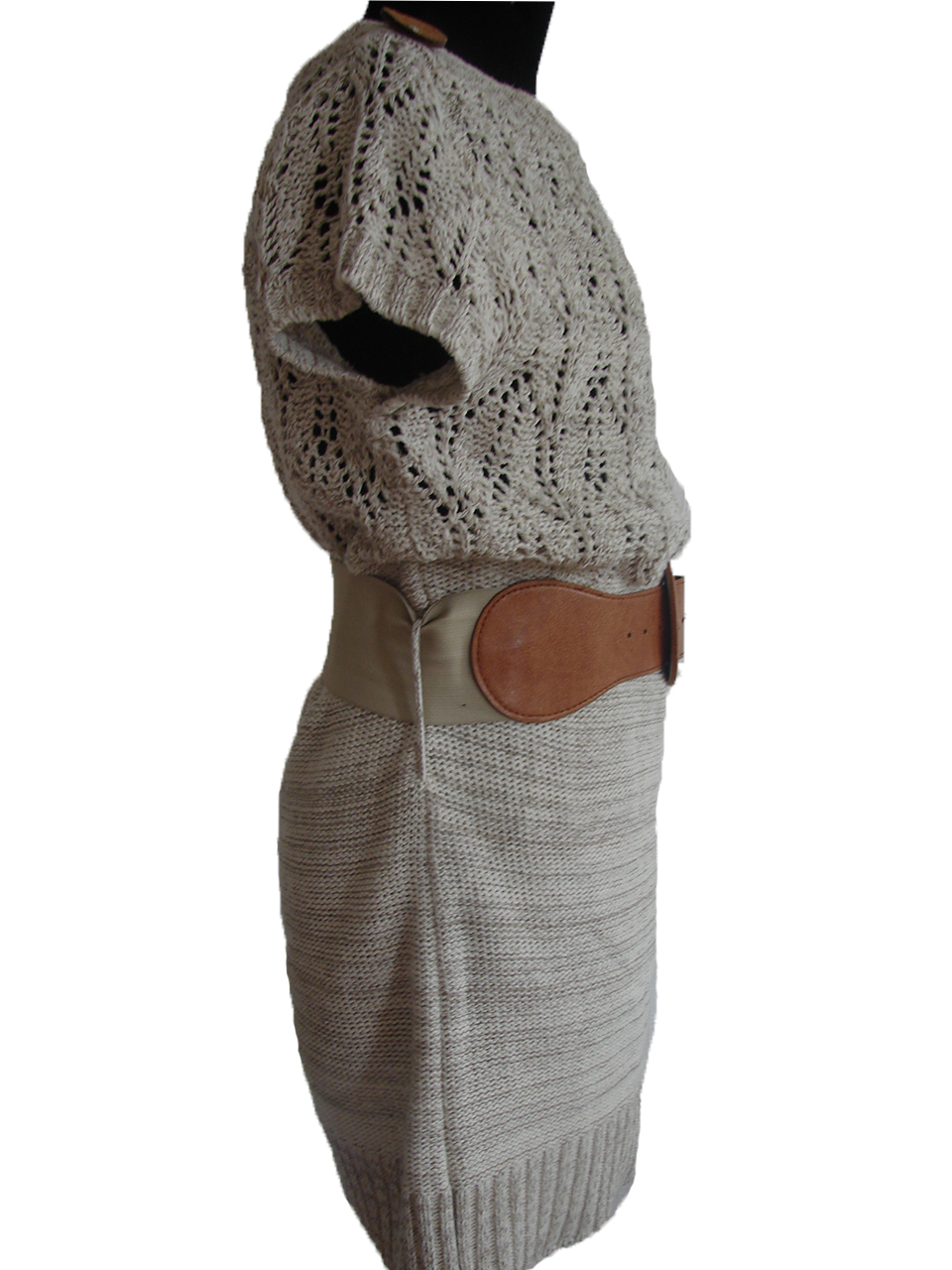 Оригинальный жилет, пояс которого, украшен широким ремнем. Приятный бежевый цвет.