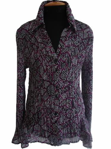 БЛУЗА Красивая, нарядная блуза(гофре),Впереди пуговицы,красивый V образный вырез,Рукава расширенны к низу. Размер 12 (европейский)(40/42) Ширина в плечах - 39см Обхват груди - 94см Длина рукава - 60см Обхват талии - 78см Длина изделия - 57см Глубина выреза - 16см |